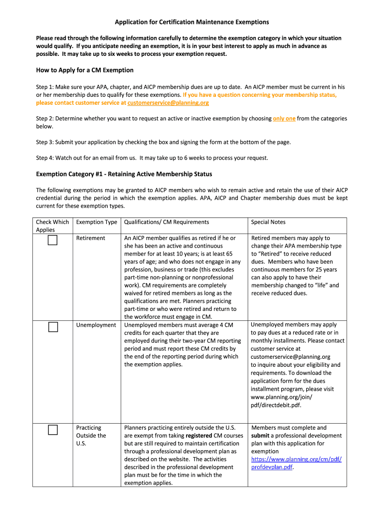 How to fill out the aicp certification maintenance exemption