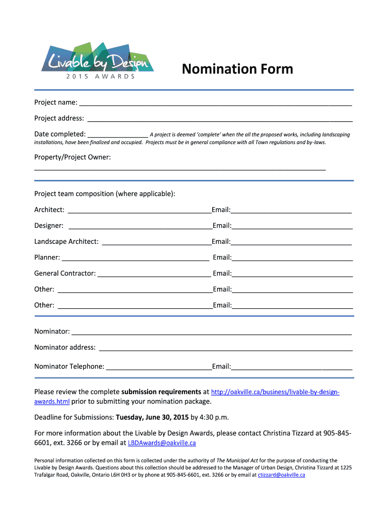 Get the free Nomination Form - Oakville Ontario