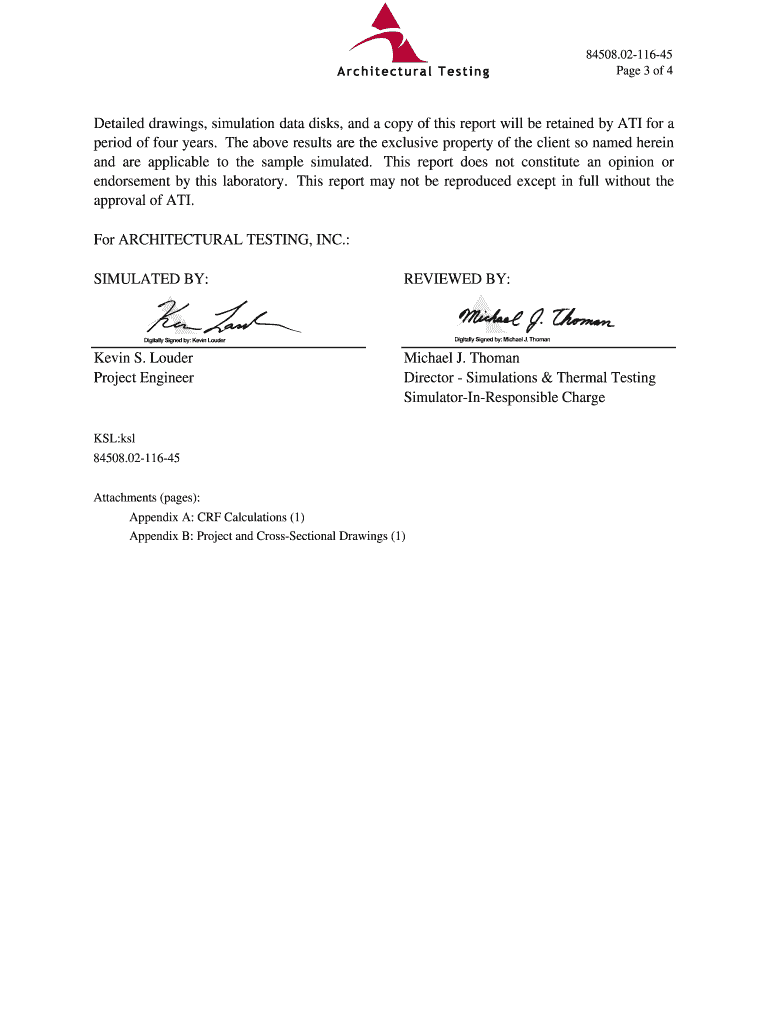 Architectural Testing THERMAL PERFORMANCE COMPUTER SIMULATION REPORT Rendered to: ELITE, INC. IS System TYPE: Glazed Wall Systems (Site built) Report No.: Report Date: Expiration Date: 130 Derry Court