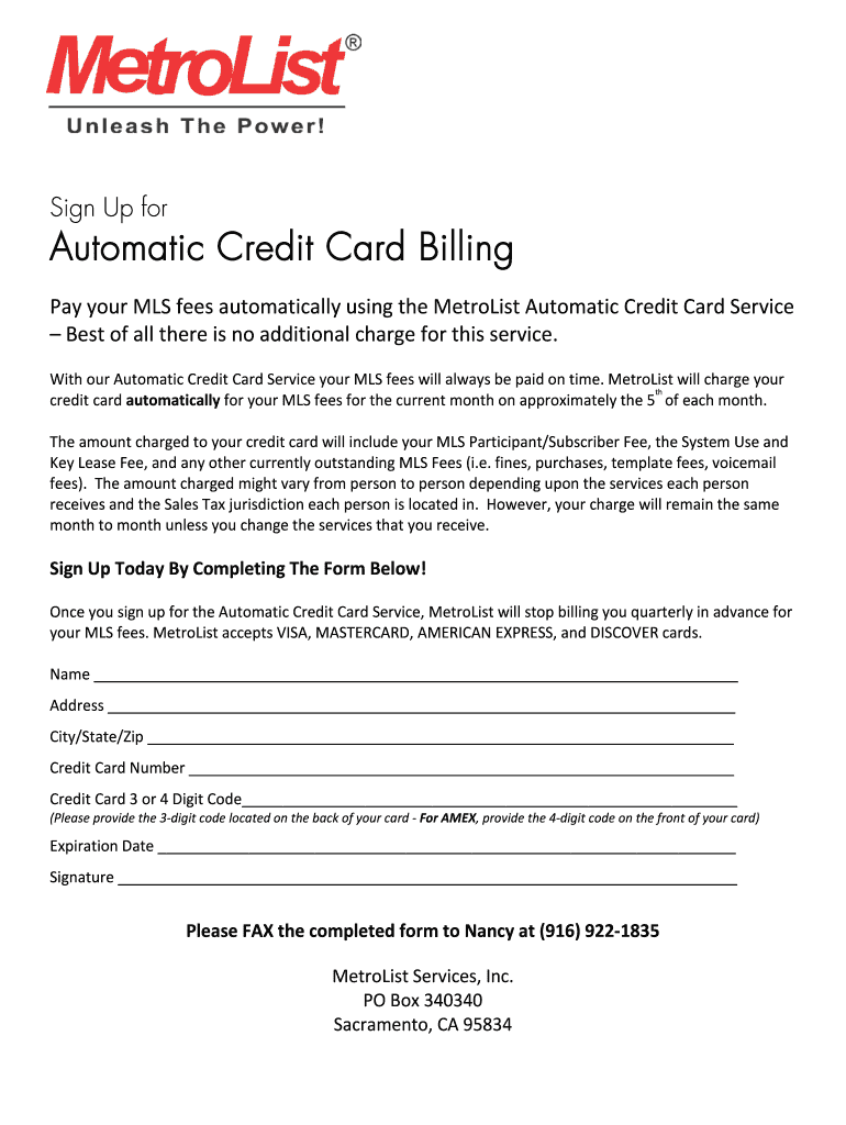 Sign Up for Automatic Credit Card Billing Pay your MLS fees automatically using the Methodist Automatic Credit Card Service Best of all there is no additional charge for this service. With our Automatic