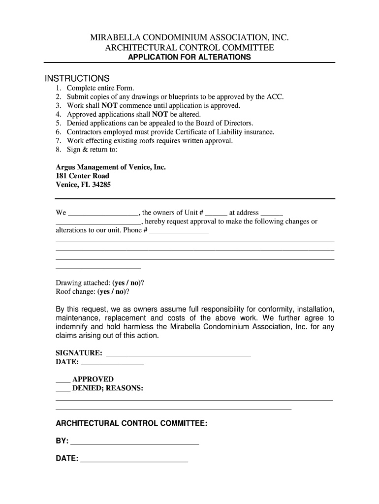 Get the free ARCHITECTURAL CONTROL COMMITTEE APPLICATION FOR ALTERATIONS INSTRUCTIONS 1