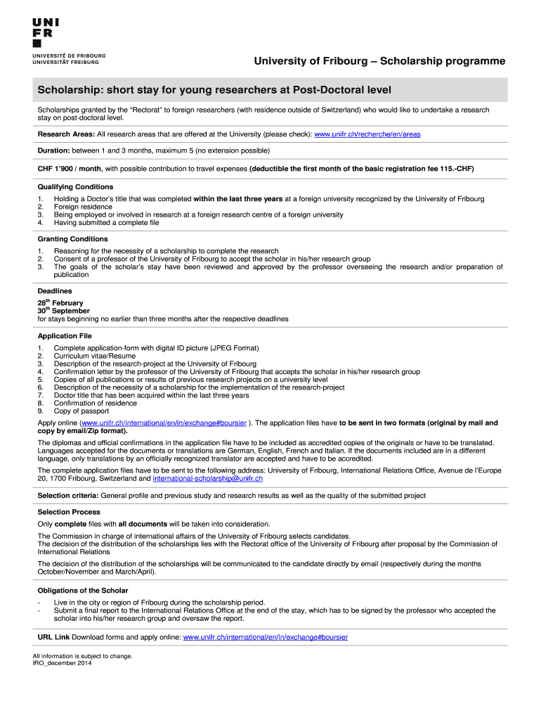 Get, Create, Make and Sign university of fribourg scholarship