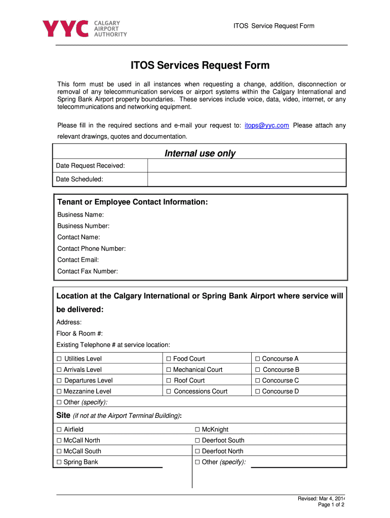ITS Service Request Form ITS Services Request Form This form must be used in all instances when requesting a change, addition, disconnection or removal of any telecommunication services or airport