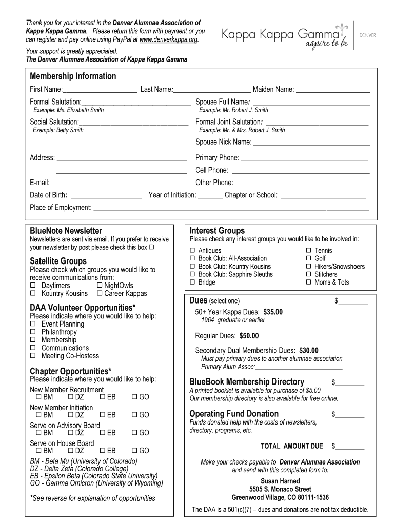 Thank you for your interest in the Denver Alumnae Association of Kappa Gamma. Please return this form with payment, or you can register and pay online using PayPal at www.denverkappa.org. Your support
