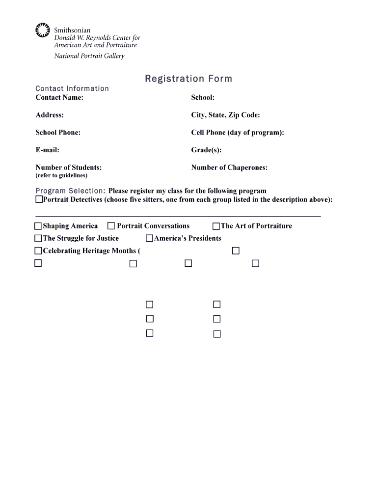 National Portrait Gallery Student Programs Guide 201516 This document provides detailed descriptions of each student program and includes the two required registration forms. For questions about registration,