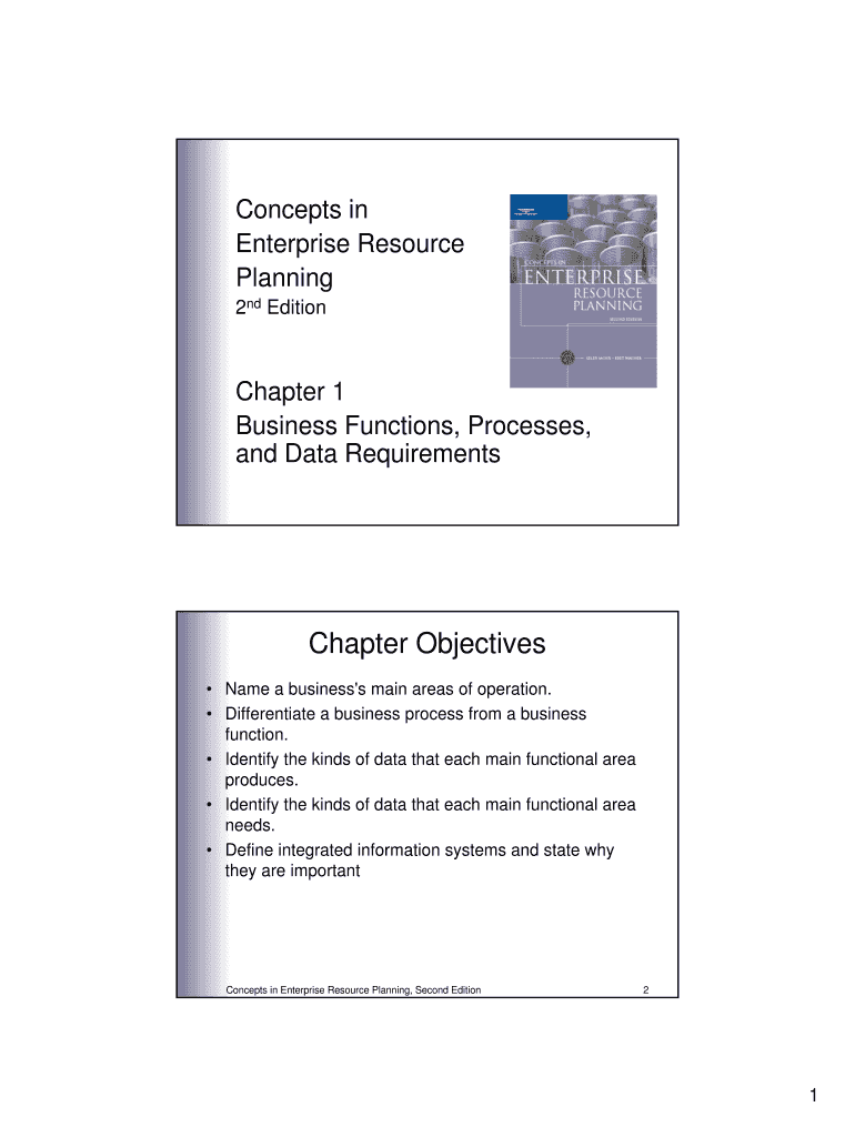 Concepts in Enterprise Resource Planning 2nd EditionChapter 1 Business Functions, Processes, and Data RequirementsChapter Objectives Name a business's main areas of operation. Differentiate a business