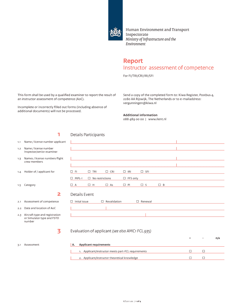 Report Instructor assessment of competence For FI/TRI/CRY/IRI/SFI This form shall be used by a qualified examiner to report the result of an instructor assessment of competence (AOC). Send a copy