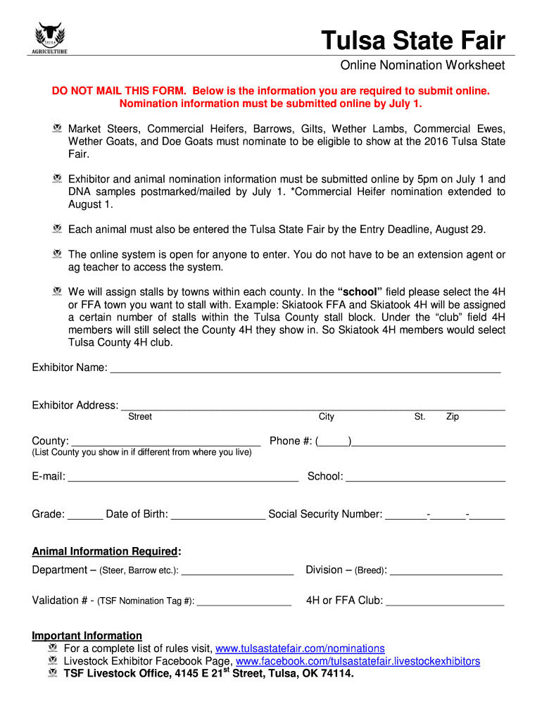 DO NOT MAIL THIS FORM. Below is the information you are required to submit online.