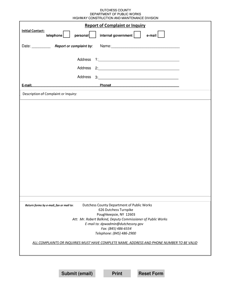 Get the free Public Works - Report of Complaint or Inquiry - co dutchess ny