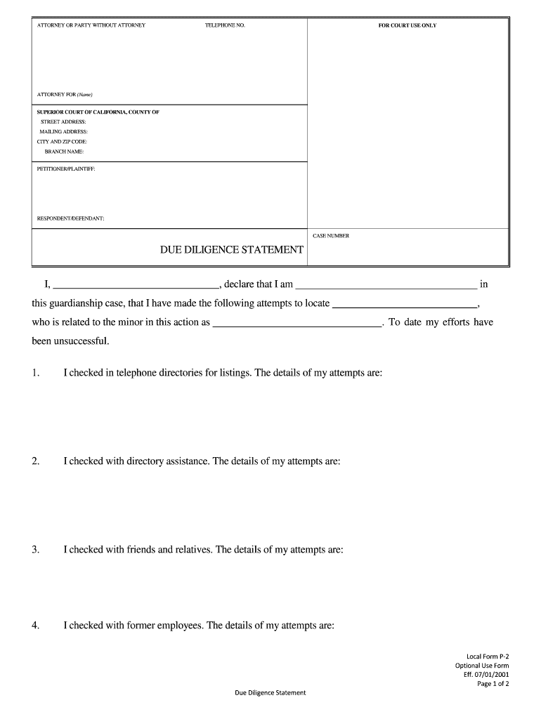 ATTORNEY OR PARTY WITHOUT ATTORNEY TELEPHONE NO. FOR COURT USE ONLY ATTORNEY FOR (Name) SUPERIOR COURT OF CALIFORNIA, COUNTY OF STREET ADDRESS: MAILING ADDRESS: CITY AND ZIP CODE: BRANCH NAME: PETITIONER/PLAINTIFF: