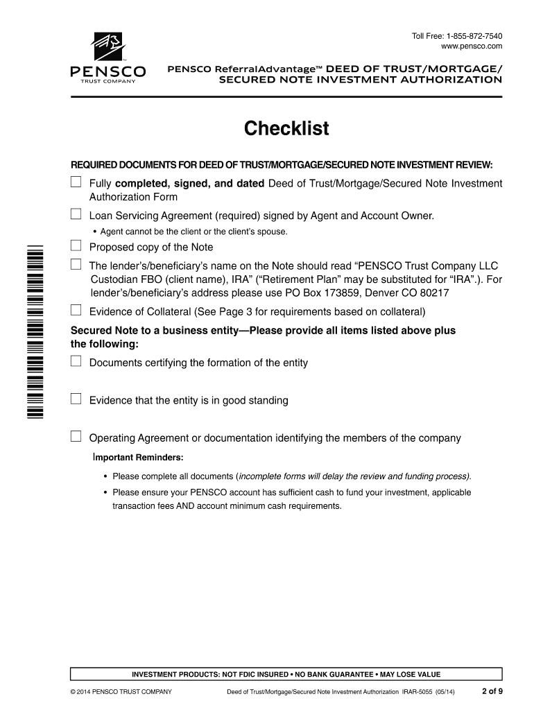 NOTE INVESTMENTS To assist you with making a Secured (Deed of Trust, Mortgage, etc.) Note investment, PEN SCO Trust Company (PEN SCO) has compiled the following list of things that you should be aware