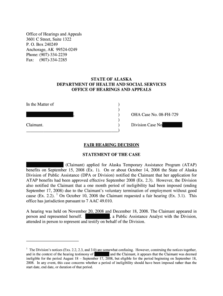Get the free Fair Hearing Decision - aws state ak