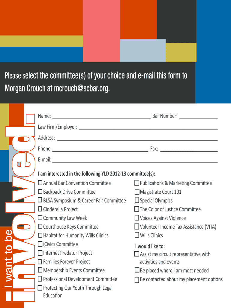 DIVISION COMMITTEES 12 YOUNG LAWYERS 13 SOUTH CAROLINA BAR Fellow Young Lawyers, You are part of the South Carolina Bar Young Lawyers Division (OLD), which comprises all those lawyers under 36 years