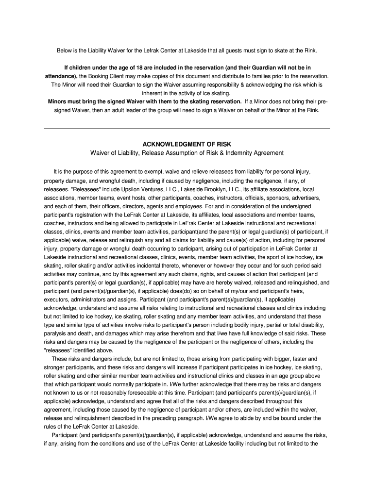 Below is the Liability Waiver for the Leak Center at Lakeside that all guests must sign to skate at the Rink. If children under the age of 18 are included in the reservation (and their Guardian will