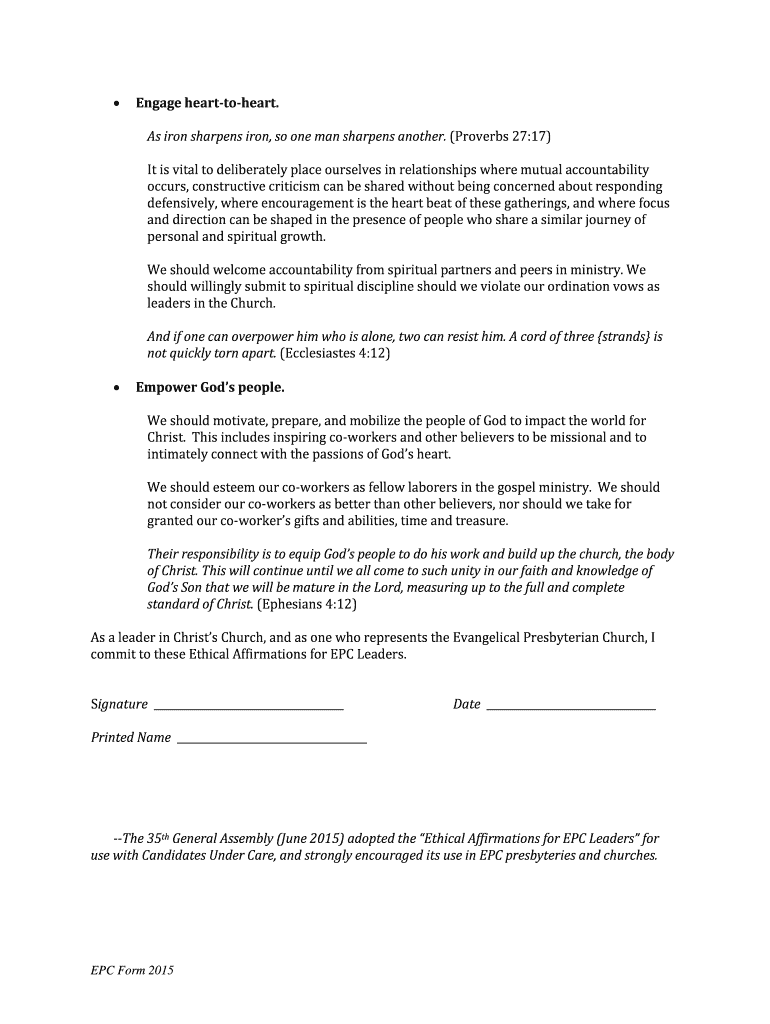 ETHICAL AFFIRMATIONS FOR EPC LEADERS
