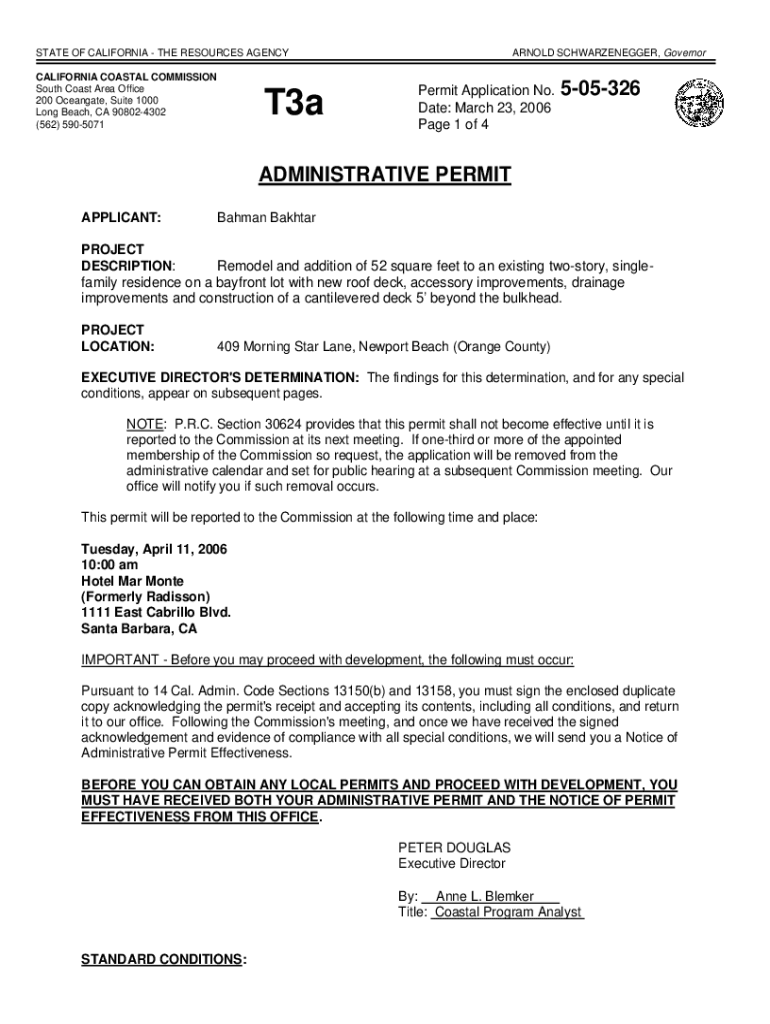 Get the free Permit Application No. 5-05-326 - documents coastal ca