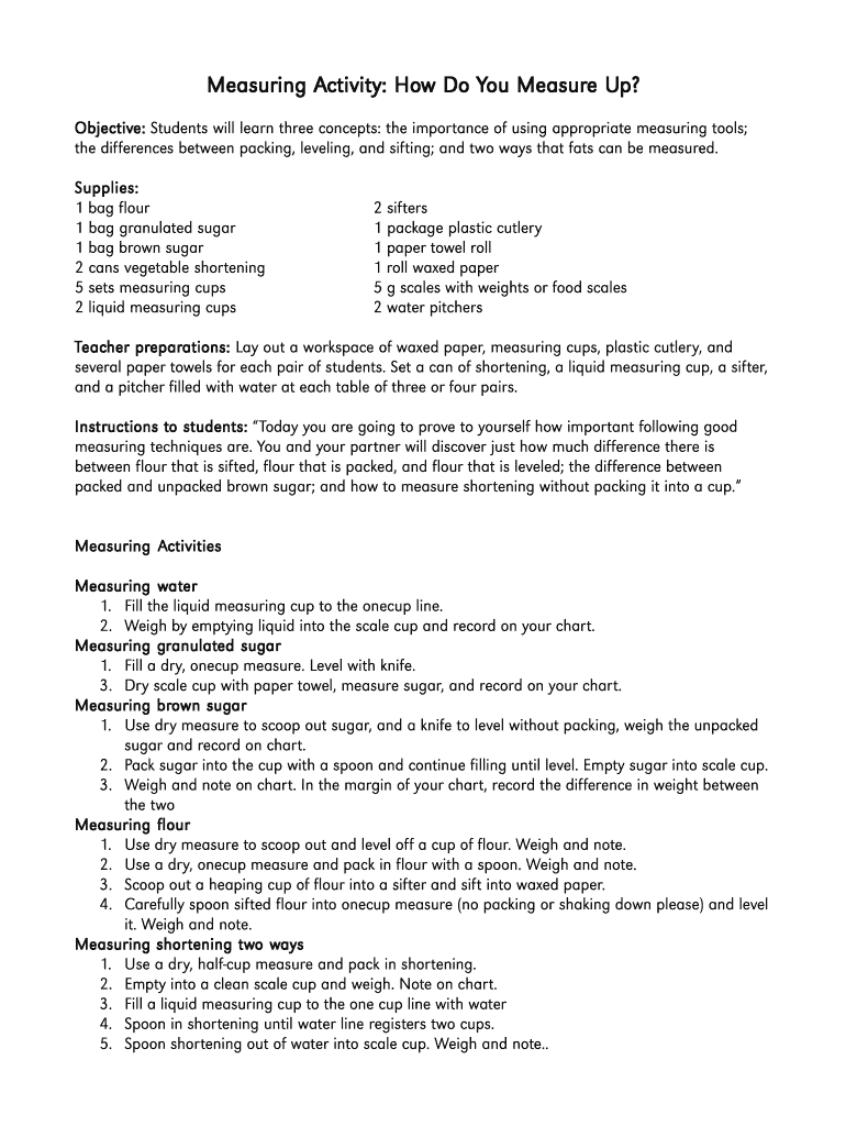 Objective: Students will learn three concepts: the importance of using appropriate measuring tools;