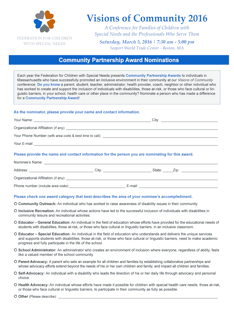 Get the free Community Partnership Award Nominations - FCSN - fcsn