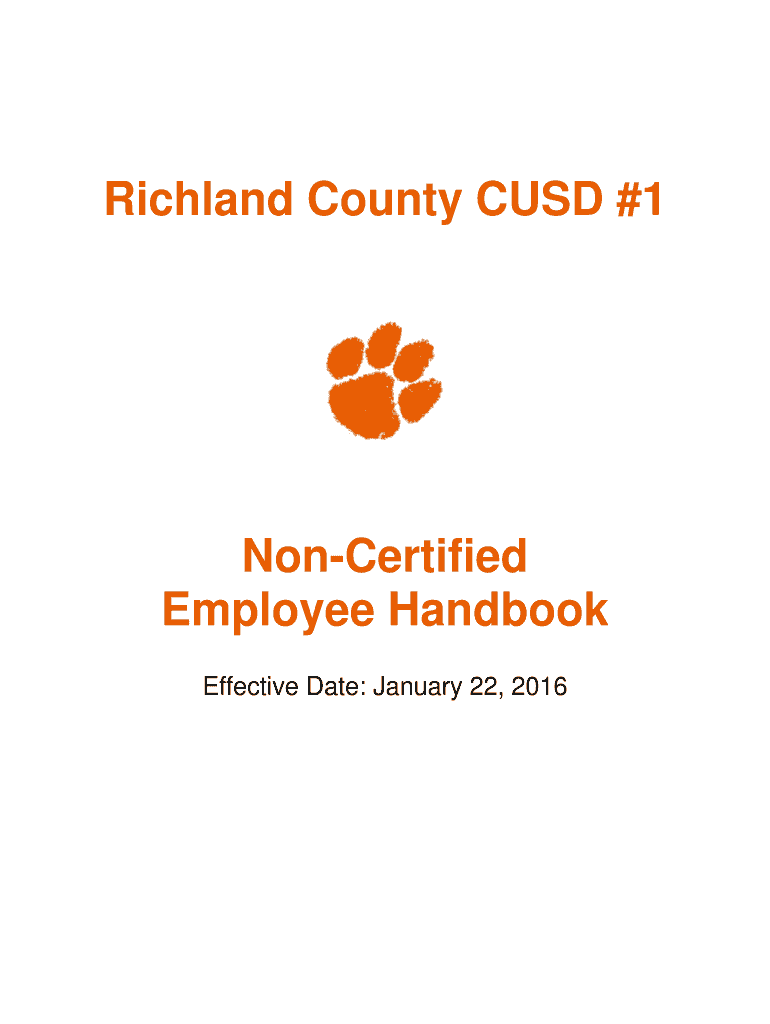 Richland County CUSP #1 Uncertified Employee Handbook Effective Date: January 22, 2016, This Employee Handbook was provided as a service to Richland CUSP #1. This Employee Handbook or excerpts thereof