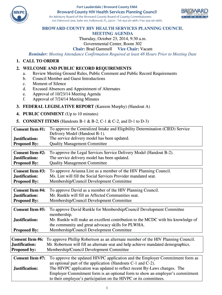 Get the free BROWARD COUNTY HIV HEALTH SERVICES PLANNING COUNCIL MEETING - brhpc