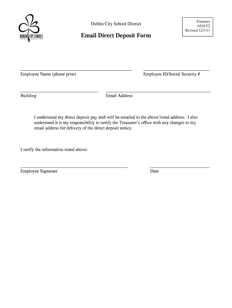 Get the free Email Direct Deposit Form - Dublin City Schools - dublinschools