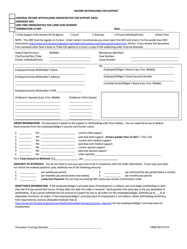 INCOME WITHHOLDING FOR SUPPORT ORIGINAL INCOME WITHHOLDING ORDER/NOTICE FOR SUPPORT (TWO) AMENDED TWO ONETIME ORDER/NOTICE FOR LUMP SUM PAYMENT TERMINATION of TWO Child Support Enforcement (IVD) Agency