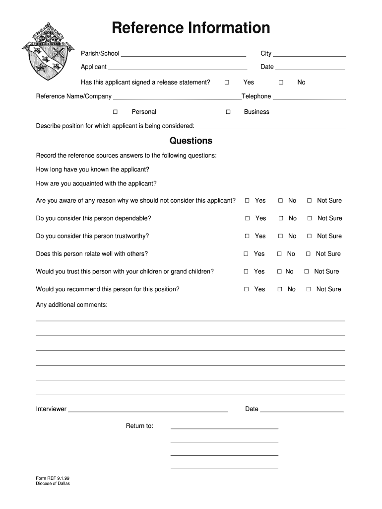 Get the free Reference Information - Roman Catholic Diocese of Dallas - cathdal