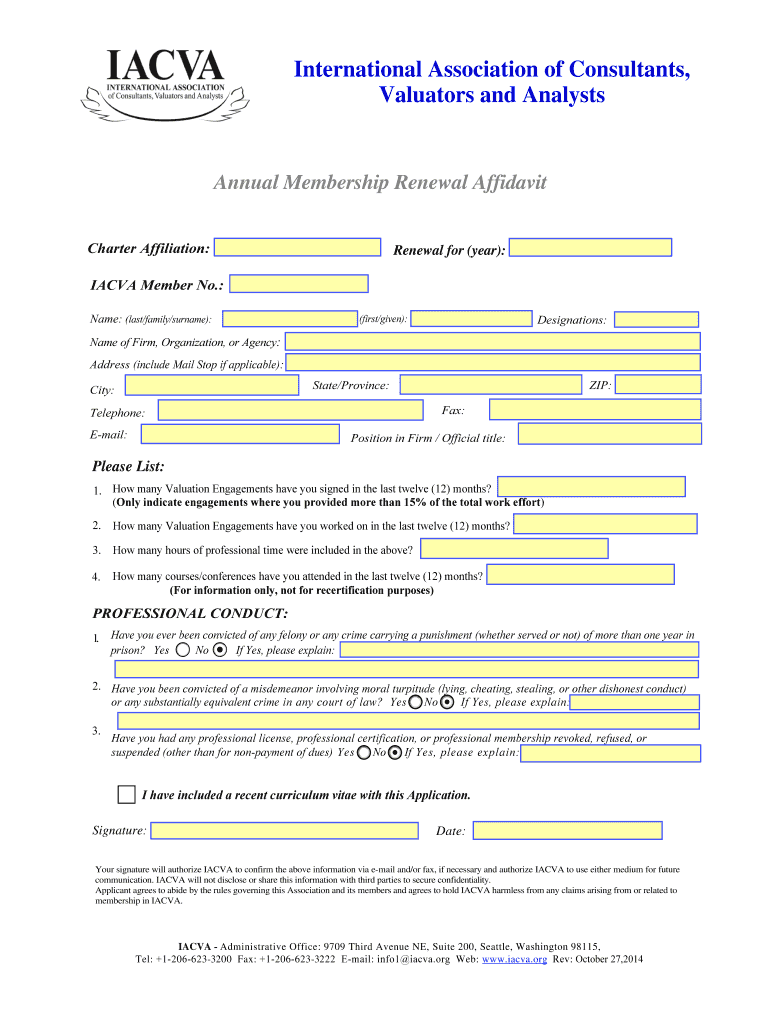 Get the free Annual Membership Renewal Affidavit - IACVA - iacva
