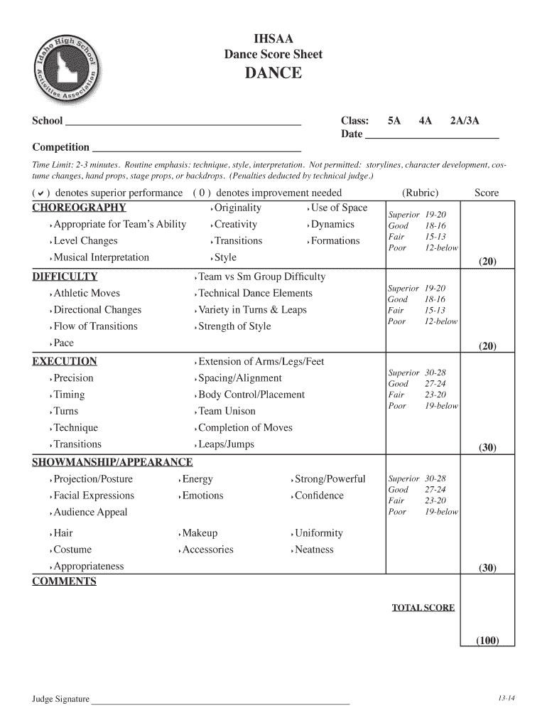 Get the free IHSAA Dance Score Sheet DANCE - IHSAA - Home - old idhsaa