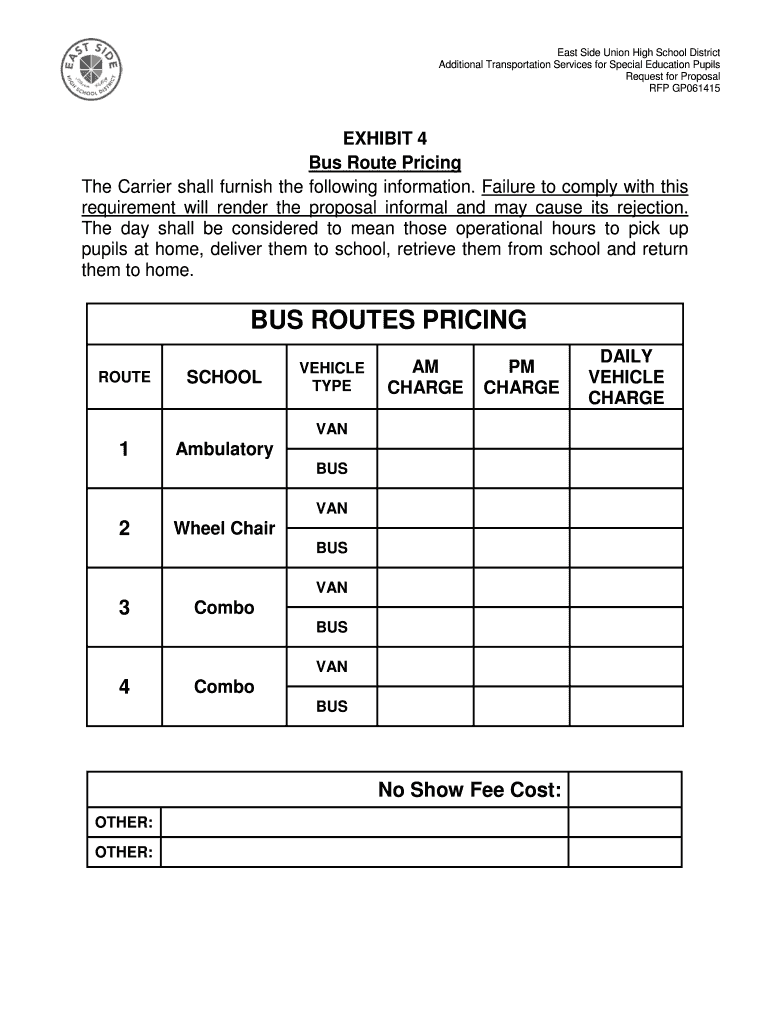 East Side Union High School District Additional Transportation Services for Special Education Pupils Request for Proposal RFP GP061415 EXHIBIT 4