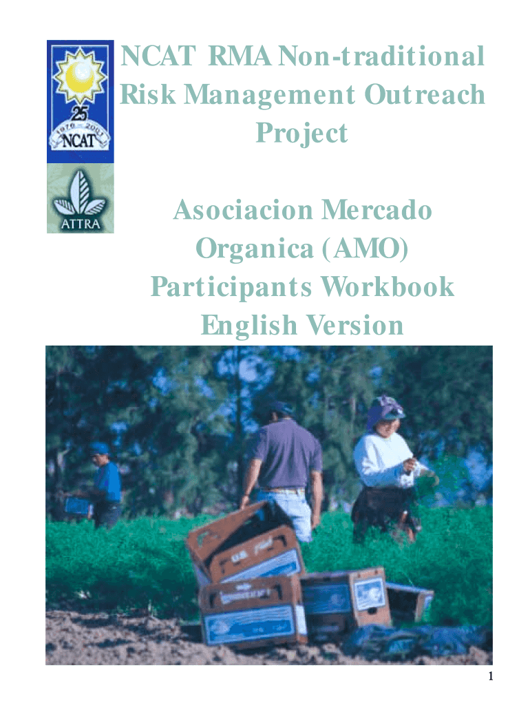 NCAA RMA Nontraditional Risk Management Outreach Project Association Mercado Organic (AMO) Participants Workbook English Version 1 NCAA / AMO COURSE OVERVIEW SESSION 1 PLANNING FOR SUCCESS FAMILY