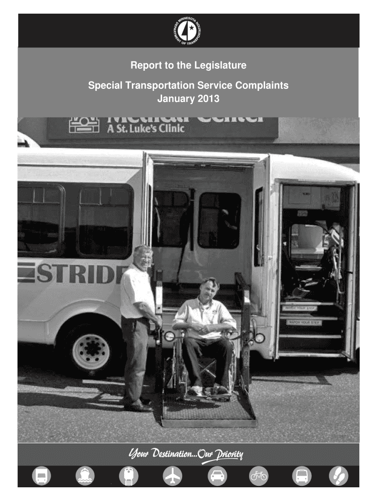 This report documents the complaints made to the Minnesota Department of Transportation against special transportation service providers as required by Minnesota Statutes. It includes findings and
