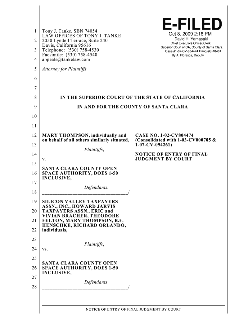 Get the free Notice Entry of Judgment with Proof of Service
