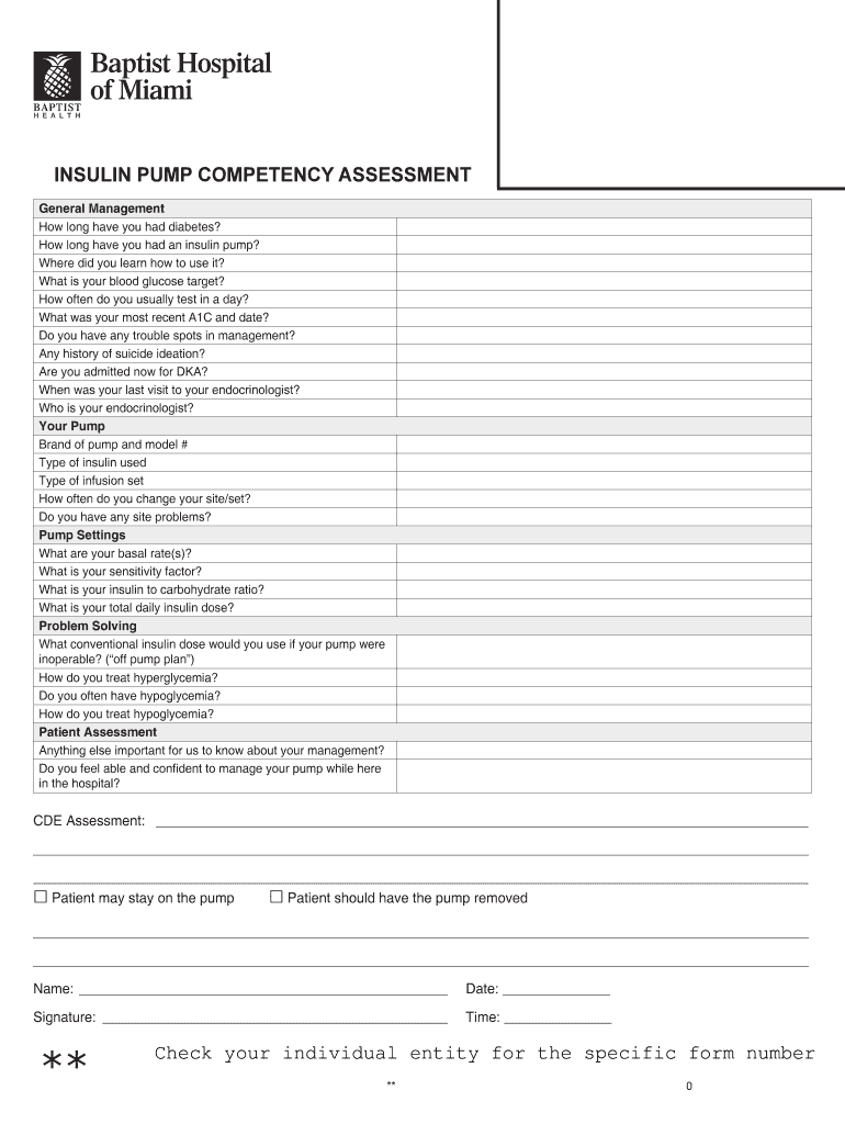 Get the free InsulIn PumP ComPetenCy Assessment - contentbaptisthealthnet