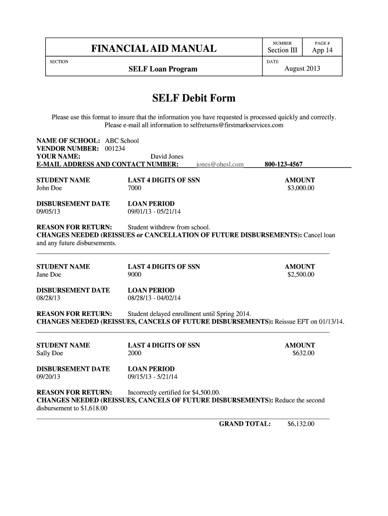 The SELF Debit Form is vital for students and educational institutions alike. It helps ensure the accurate management of student loans, making the financial aid return and disbursement process smoother.