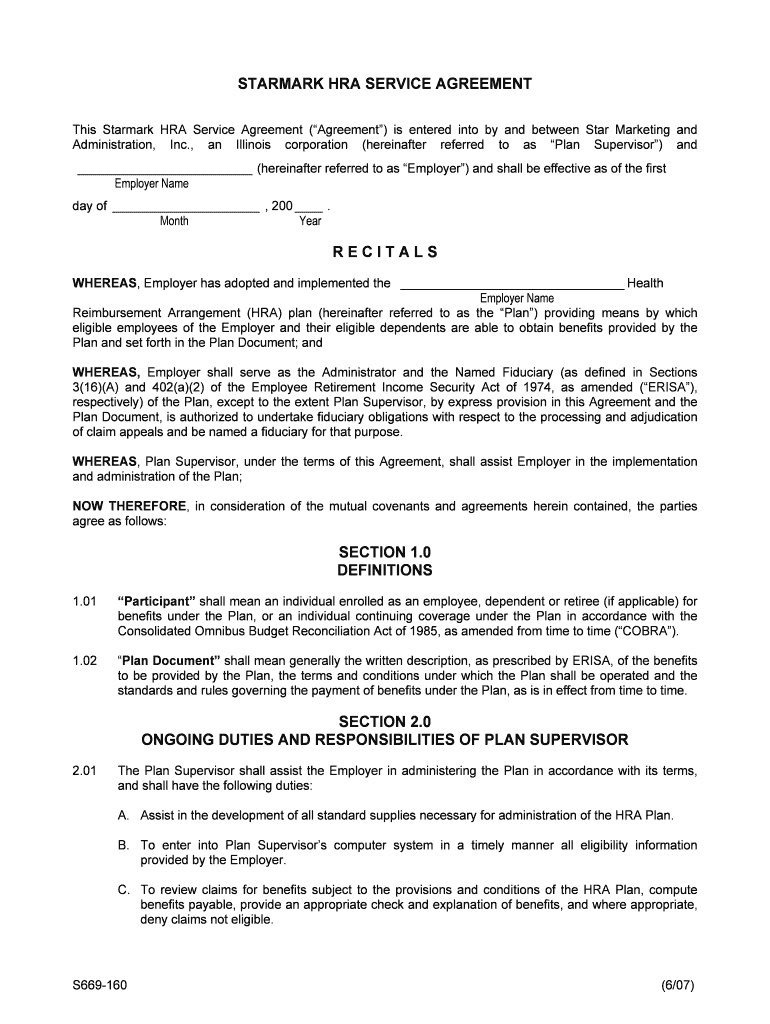 Get the free Starmark HRA Service Agreement S669-160