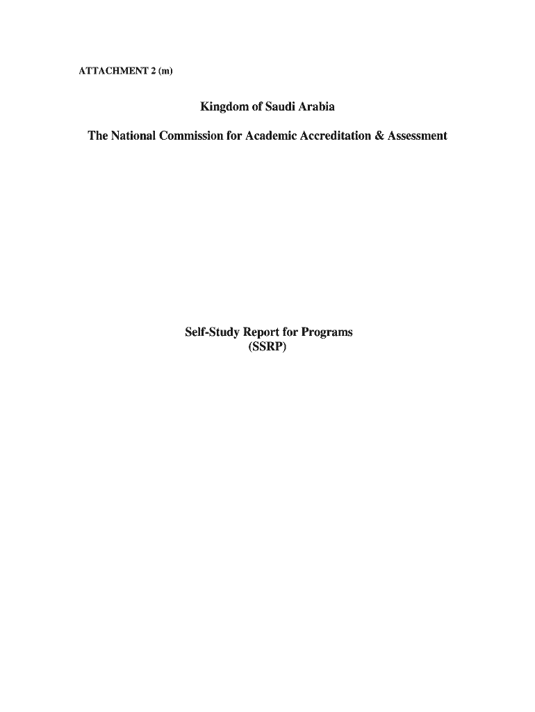 ATTACHMENT 2 (m) Kingdom of Saudi Arabia The National Commission for Academic Accreditation & Assessment Restudy Report for Programs (SSR) Kingdom of Saudi Arabia National Commission for Academic