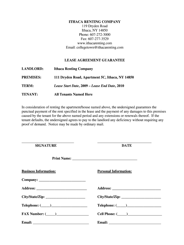 Get the free LEASE AGREEMENT GUARANTEE LANDLORD Ithaca Renting Company