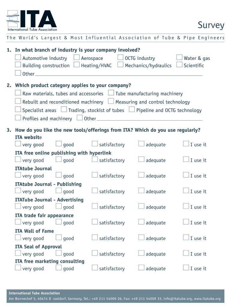 Get the free Survey - ITA International Tube Association - itatube