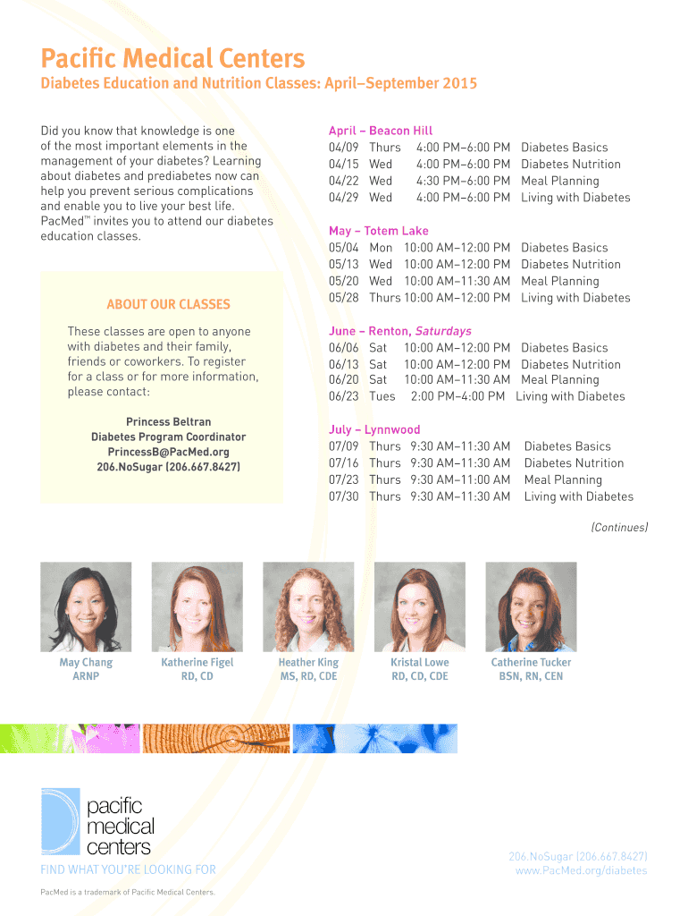 Pacific Medical CentersDiabetes Education and Nutrition Classes: April September 2015