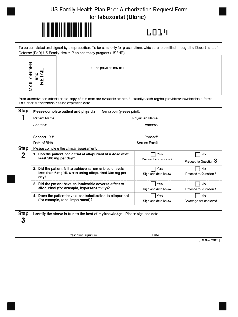 Get the free Prior Authorization Criteria for Febuxostat Uloric - usfamilyhealth