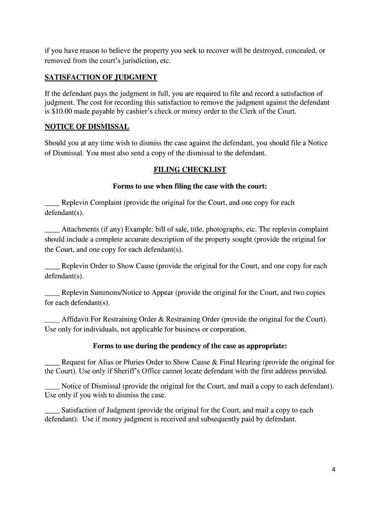 Get the free REPLEVIN PACKET NOTICE intended to be used as legal