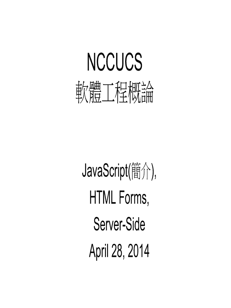 Get the free NCCUCS JavaScript(), HTML Forms, ServerSide April 28, 2014 Agenda JavaScript JavaScr...