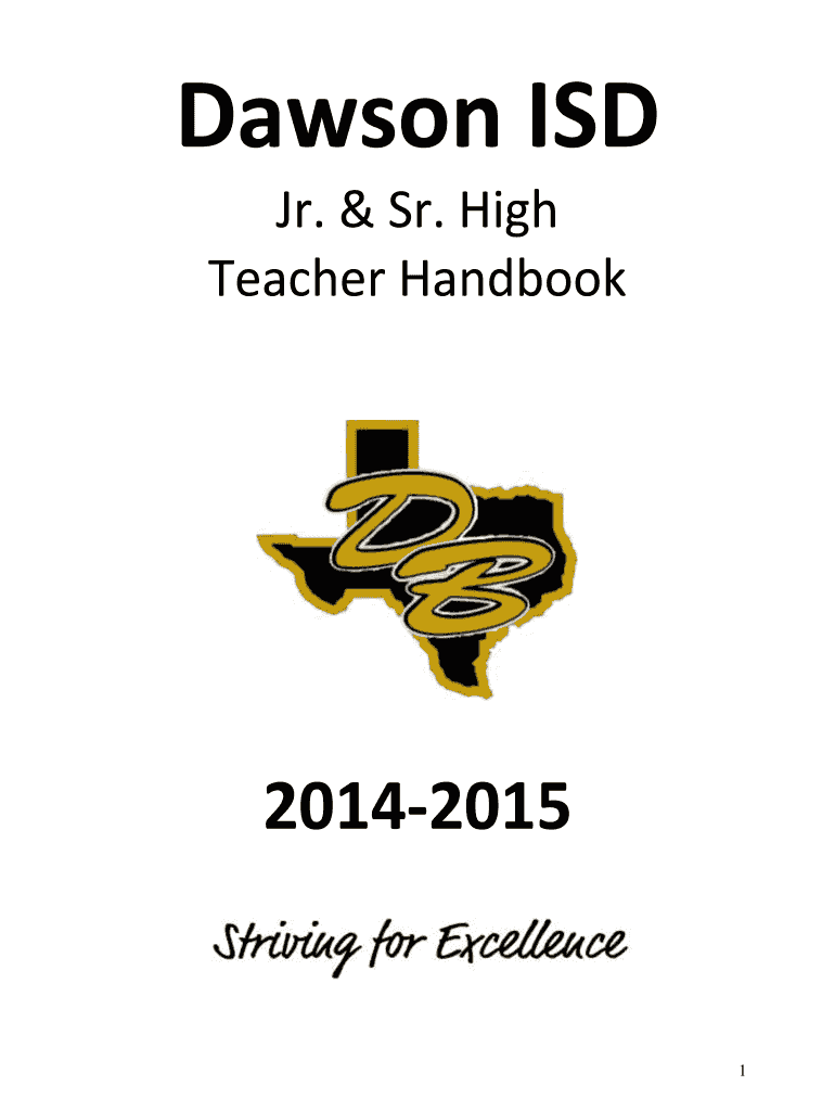 Dawson ISD Jr. & Sr. High Teacher Handbook 20142015 1 TABLE OF CONTENTS Bell Schedule Calendar PAS Appraisal Calendar Introduction, Mission, Goals, Announcements Attendance Student Support, Classroom,