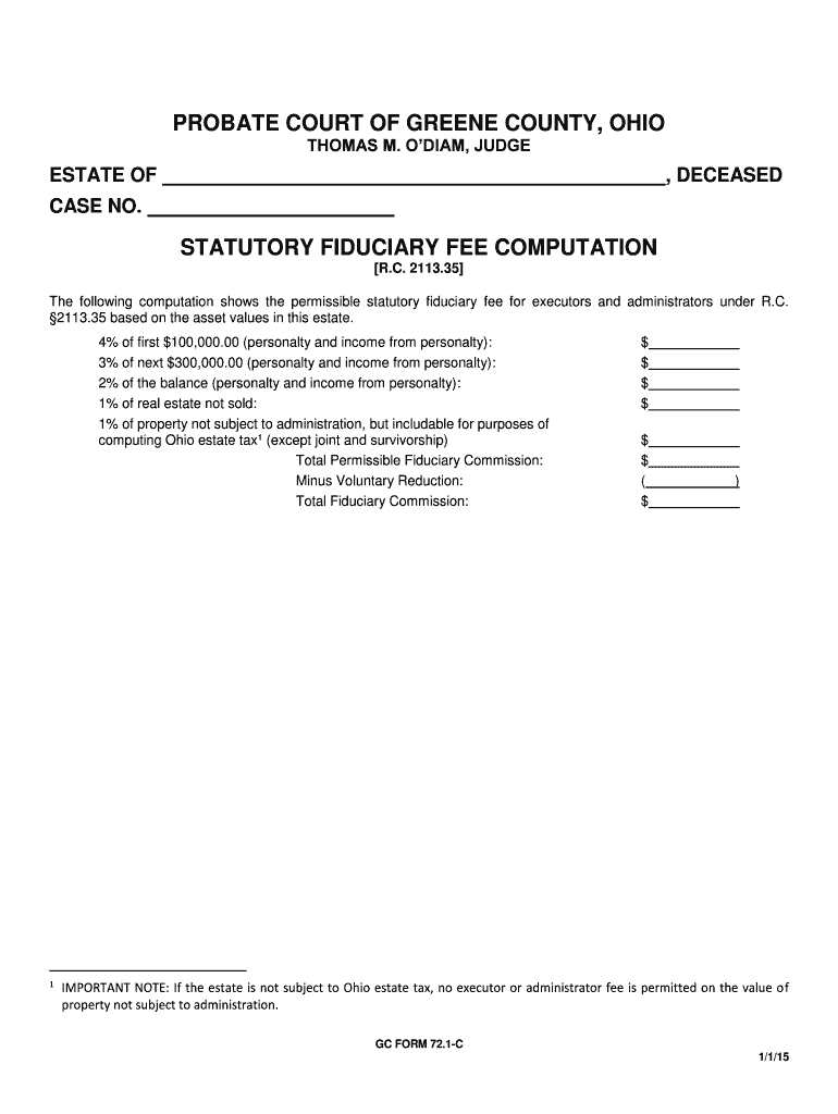 Get the free STATUTORY FIDUCIARY FEE COMPUTATION - co greene oh
