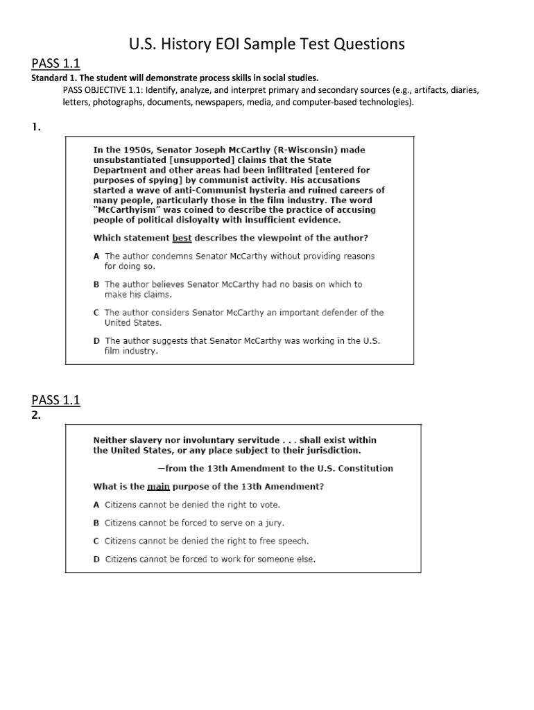 Students who are studying history or taking history courses may be required to take the history eoi sample test.