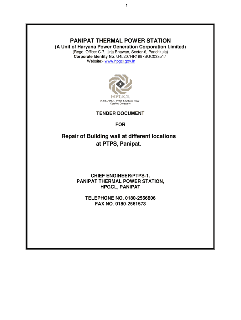 Get the free Repair of Building wall at different locations - hpgcl gov