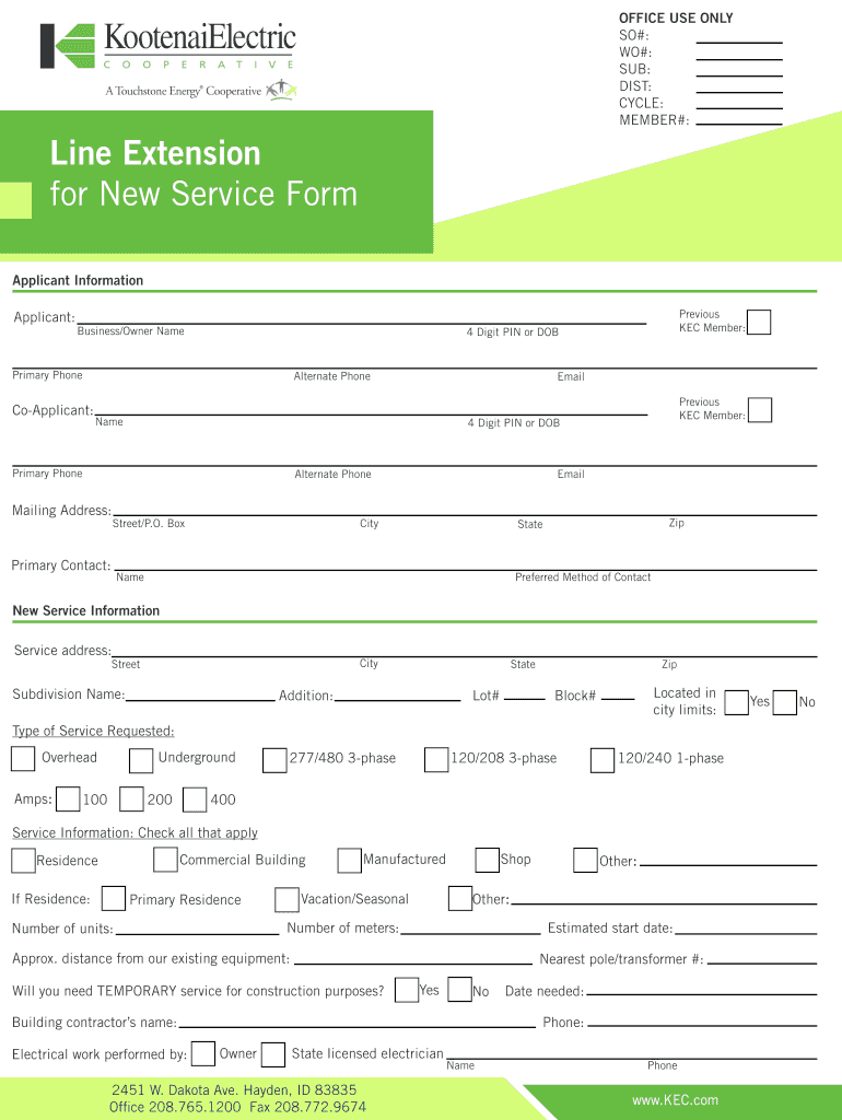 New Service Cover Letter Dear Applicant: Thank you for contacting Kootenai Electric Cooperative and inquiring about a new electric service. We have provided the following checklist to assist you in