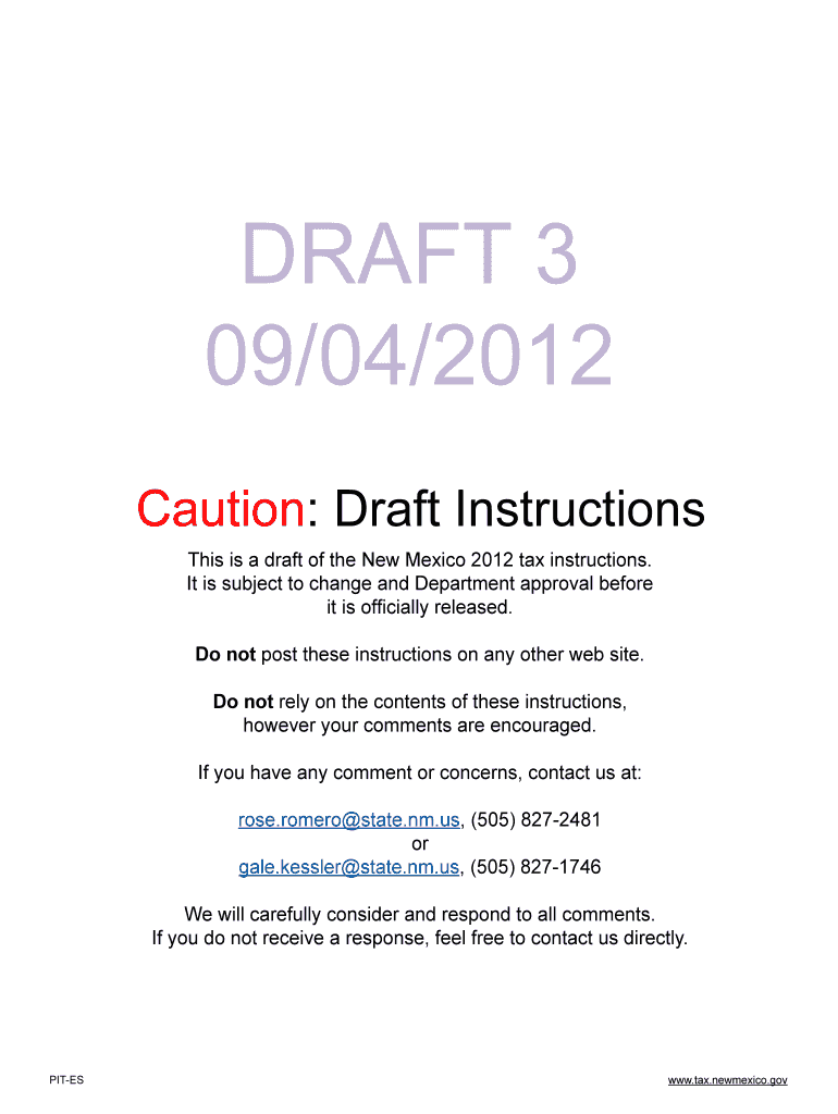 Get the free This is a draft of the New Mexico 2012 tax instructions - 8 26 232