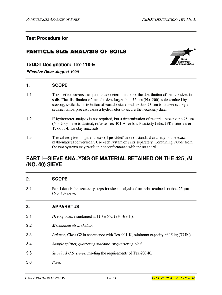 Who is required to file PARTICLE SIZE ANALYSIS OF SOILS?